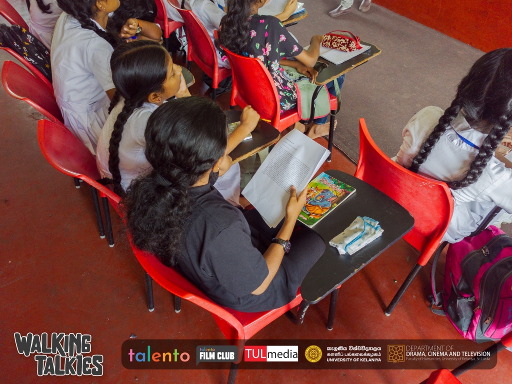 රත්නාවලී බාලිකා විද්යාලයේ අද පැවති Walking Talkies වැඩසටහනේ පස්වන වැඩමුළුව තිර රචන කලාව කෙරෙහි සිසුන්ගේ නැඹුරුවක් ඇති කිරීමට අප උත්සහ දැරීය. චිත්රපට නිර්මාණයේ මෙම තීරණාත්මක අංගය සඳහා වෙන් වූ දෙවන වැඩමුළුව වන මෙම සැසියේදී, සිසුවියන්ගේ කැපී පෙනෙන සහභාගීත්වයක් සහ උද්යෝගයක් දක්නට ලැබුණි.